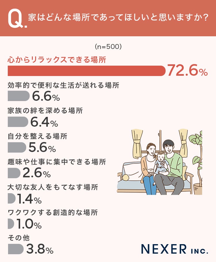 「家はリラックス空間であるべき」7割以上が回答!住まいに求める一番の役割とは?