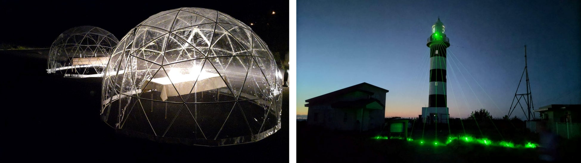 屋外エリアでは、ドイツ製のドーム型テント「ガーデンイグルー」とキッチンカーを利用した野外レストランをオープン。イグルー近くには焚き火台を設置しますので、暖をとりながらのんびりと灯台を眺める癒しのひとときをお過ごしいただけます。