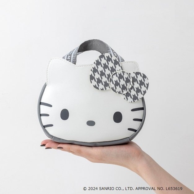 千鳥格子柄リボンのハローキティをグレーのワントーンカラー表現♪