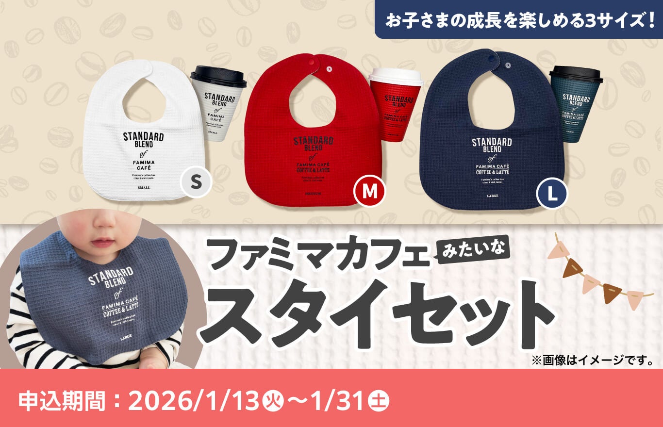 【内容】おなじみの「ファミマカフェ」のカップを忠実に再現するべく、生地からこだわった遊び心あふれるデザインのスタイセット。 S・M・Lの3枚がセットになっているので、赤ちゃんの成長に合わせて長く愛用いただけます。思わず写真を撮りたくなるキャッチーなデザインで普段使いはもちろん、他とは被らない「出産祝い」としてもぜひご利用ください。
