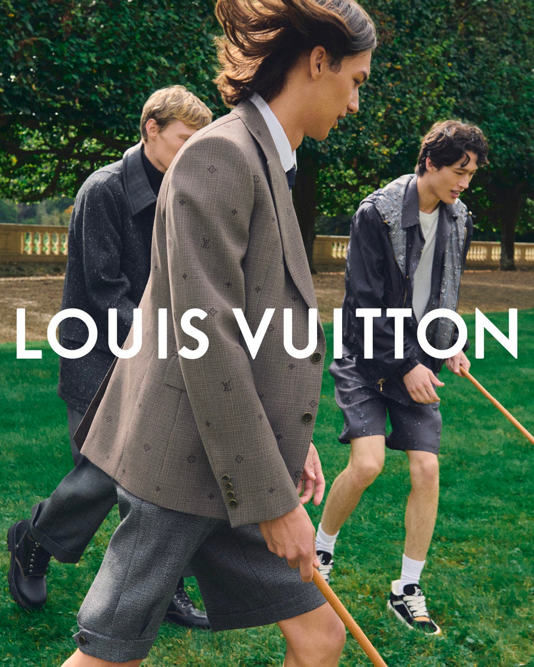 庭園、記念碑のような階段、そしてクラシックなオープンカーで、2人の国際的なスターがモデルや犬と共演。完璧なワークウェア風のテーラードに身を包み、丘陵地帯に建つ英国風の古い邸宅に漂う、洗練された心地よさをモダンに表現します。LV モノグラム プリンス·オブ·ウェールズのジャケットとベスト、肩のラインがシャープなヘリンボーンのオーバーコート、ヴァージンウールのスリーピースは、カジュアルな雰囲気のカットで仕立てられています。リブ編みのセーラーカラーのジップアップ、ボディラインにフィットするフランネル、ジーンズなど、洗練された定番アイテムに加え、レザースリーブのウィンドブレーカー、ツイード素材のブルゾンなど、ハイブリッドなスタイルも揃います。パッド入りのシュータンにやや傾斜した LV シグネチャーが付いていることで名付けられた「LV ティルテッド」は、1990年代のスケートボードスタイルのローカット·スニーカー。ダミエ·パターンを施した、幅広でフラットなラバーソールが特徴です。実用的かつエレガントなバッグとバックパックのライン「LV タッチ」は、しなやかなグレインカーフレザーに切りっぱなしのスエードのアクセントを施し、ルイ·ヴィトンならではのイタリアンレザーにおけるサヴォアフェール(匠の技)の伝統を体現。