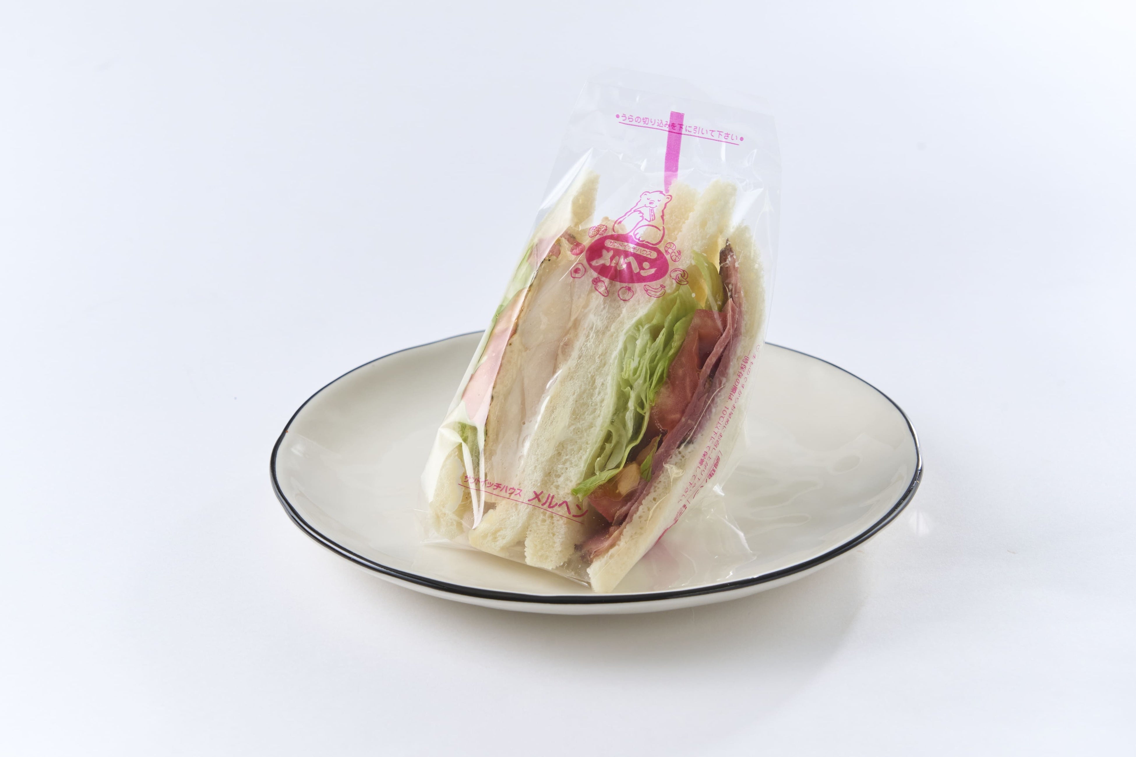 〈メルヘン〉ローストビーフとグリルチキンのペアサンド(1パック) 691円
