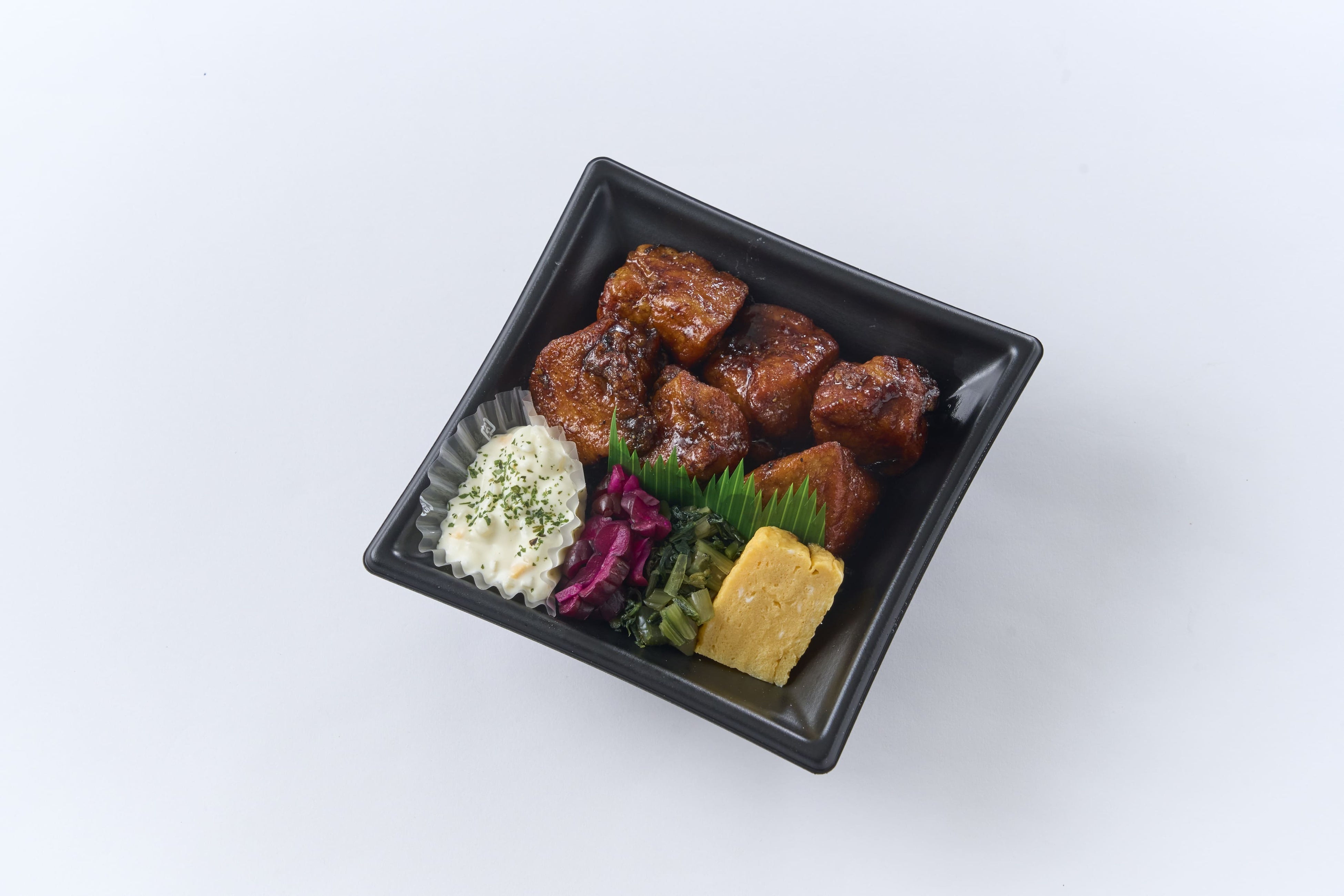 甘辛い醤油ダレをからめたお肉にタルタルソースをつけてお召し上がりください。お肉増量!スペシャル価格でご提供!