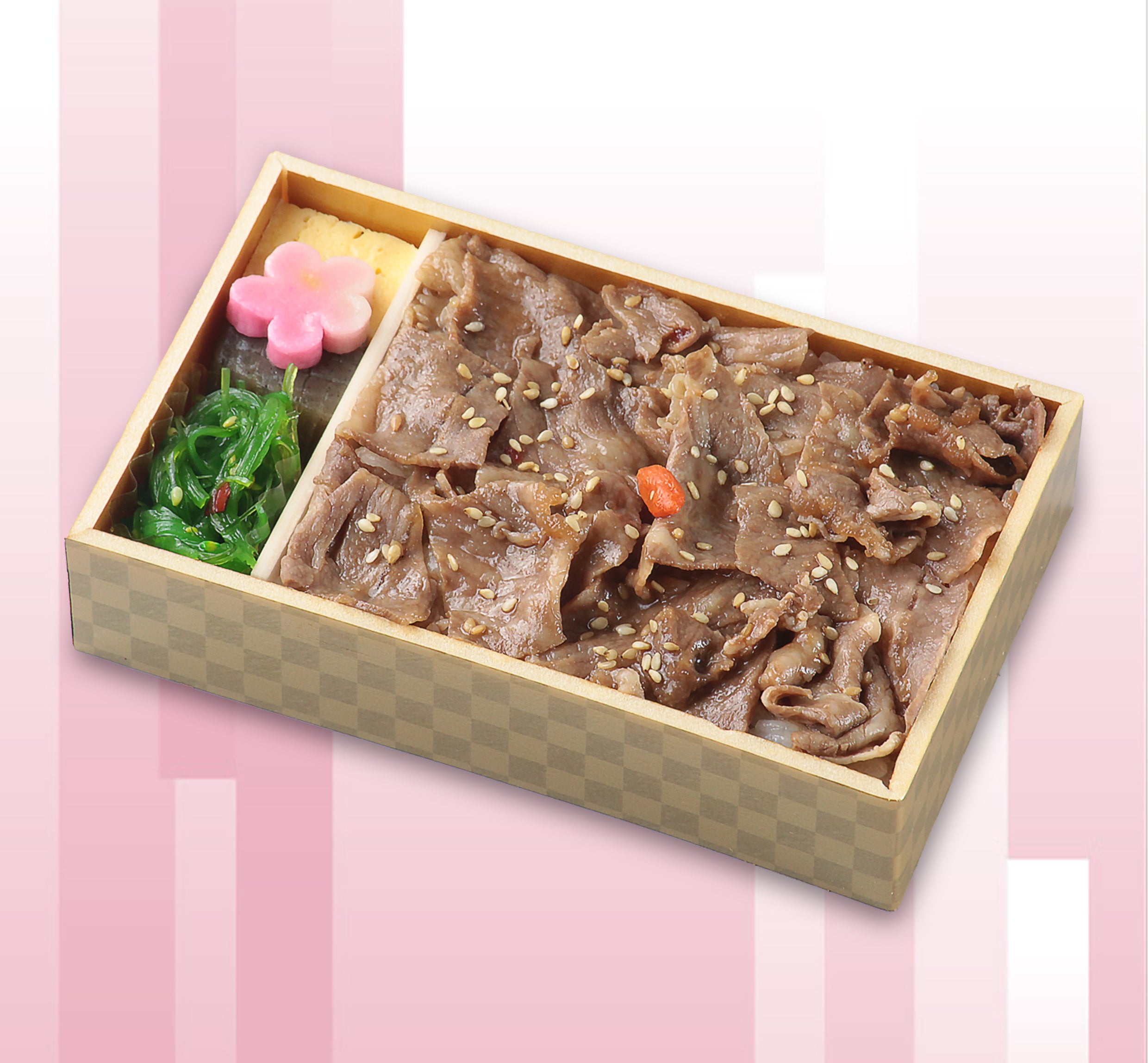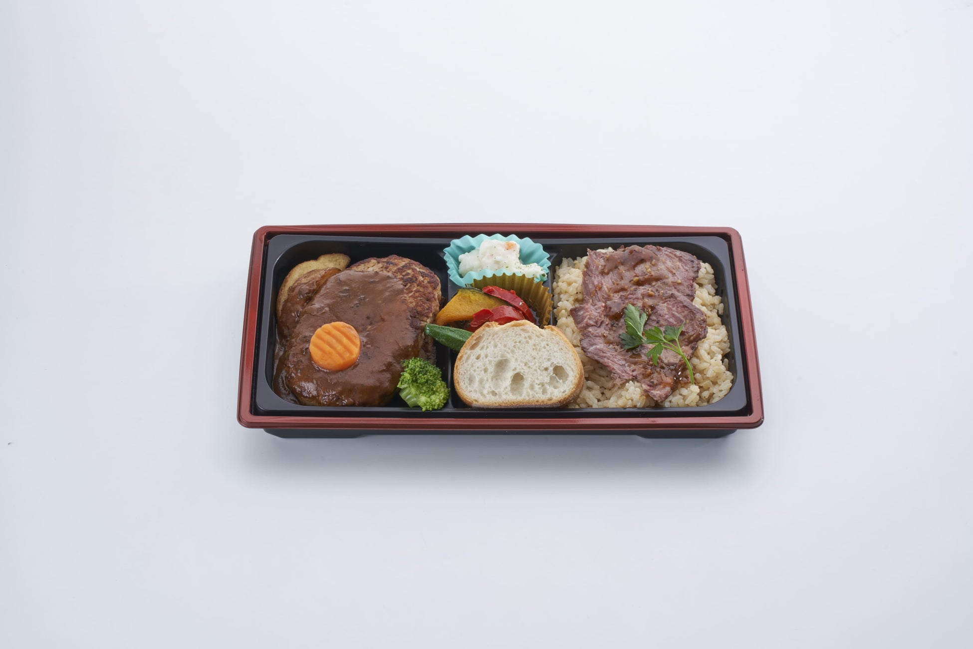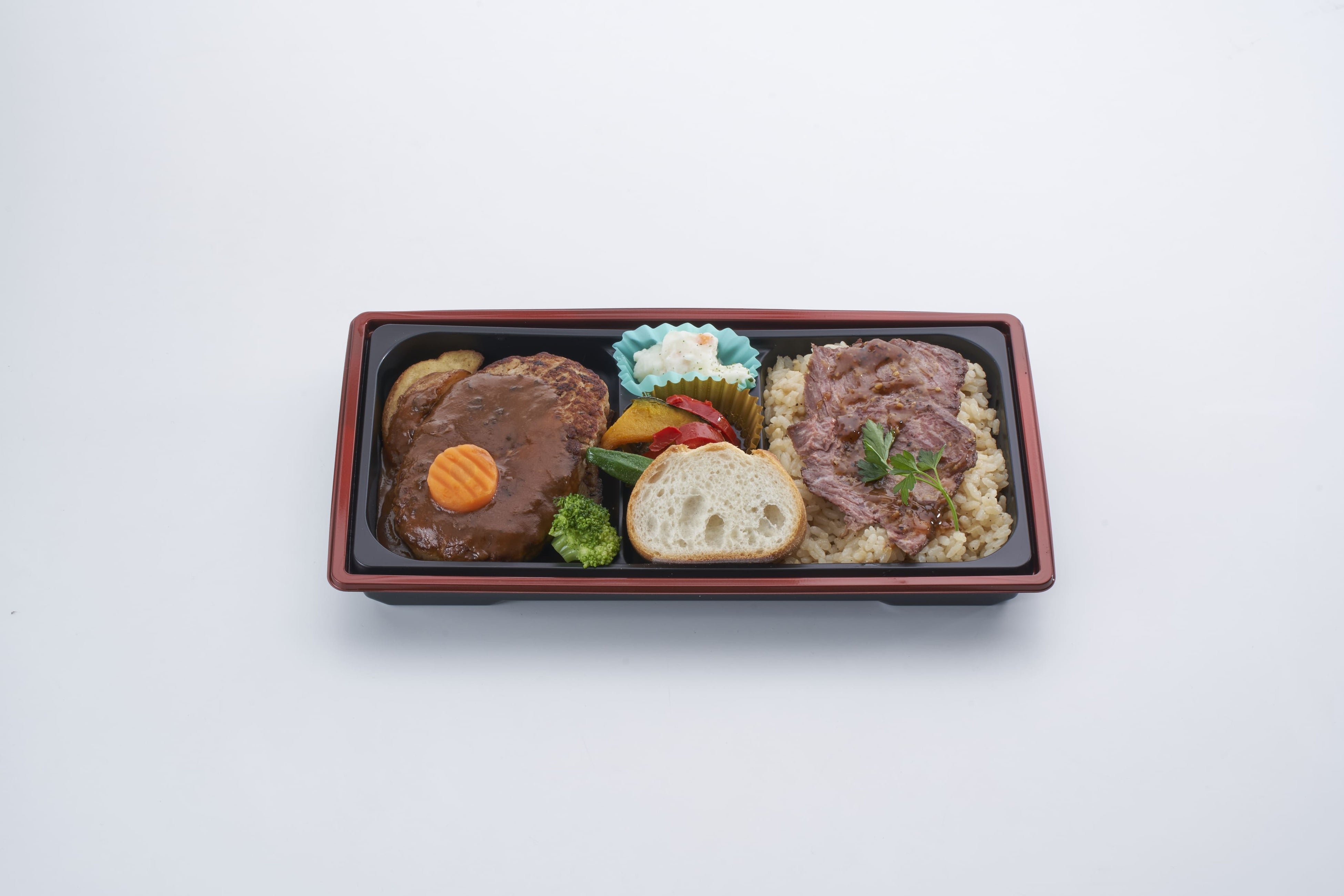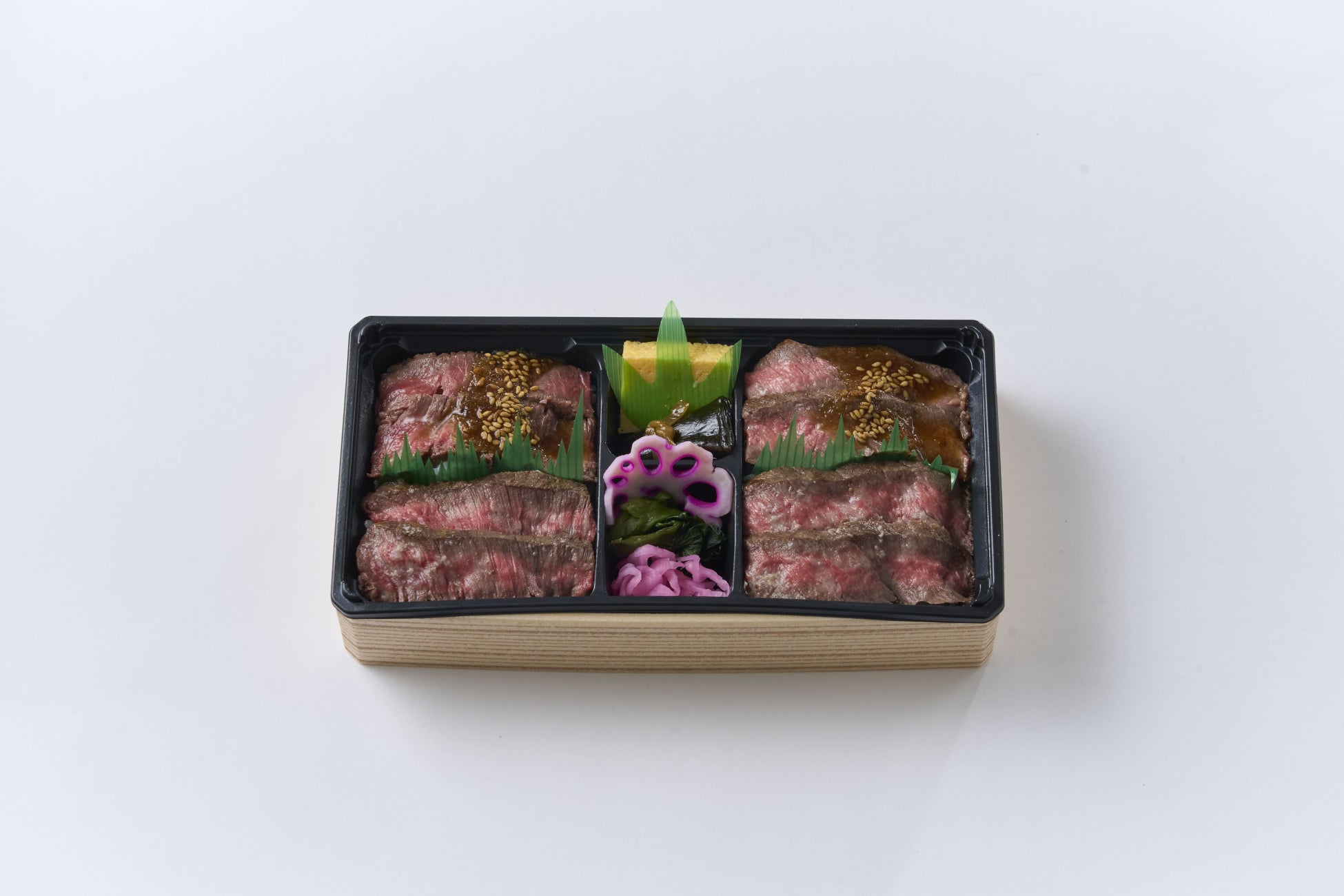 絶妙な火加減で焼き上げた牛フィレ肉と自家製タレをからめた牛バラ肉(国産)を両方楽しめる弁当。