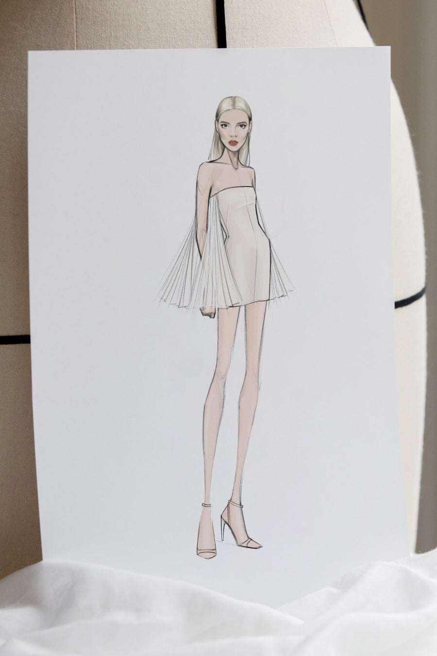 アニャ・テイラー=ジョイは、ホワイトウールとシルクのドレスに、ホワイトオーガンザのプリーツケープを纏いました。このドレスはメゾンのアトリエで550時間をかけて完成に導かれます。ディオールアトリエのエクセレンスを体現したサヴォワールフェールの詳細をソフィ・カルによる撮り下ろし写真からご覧ください。