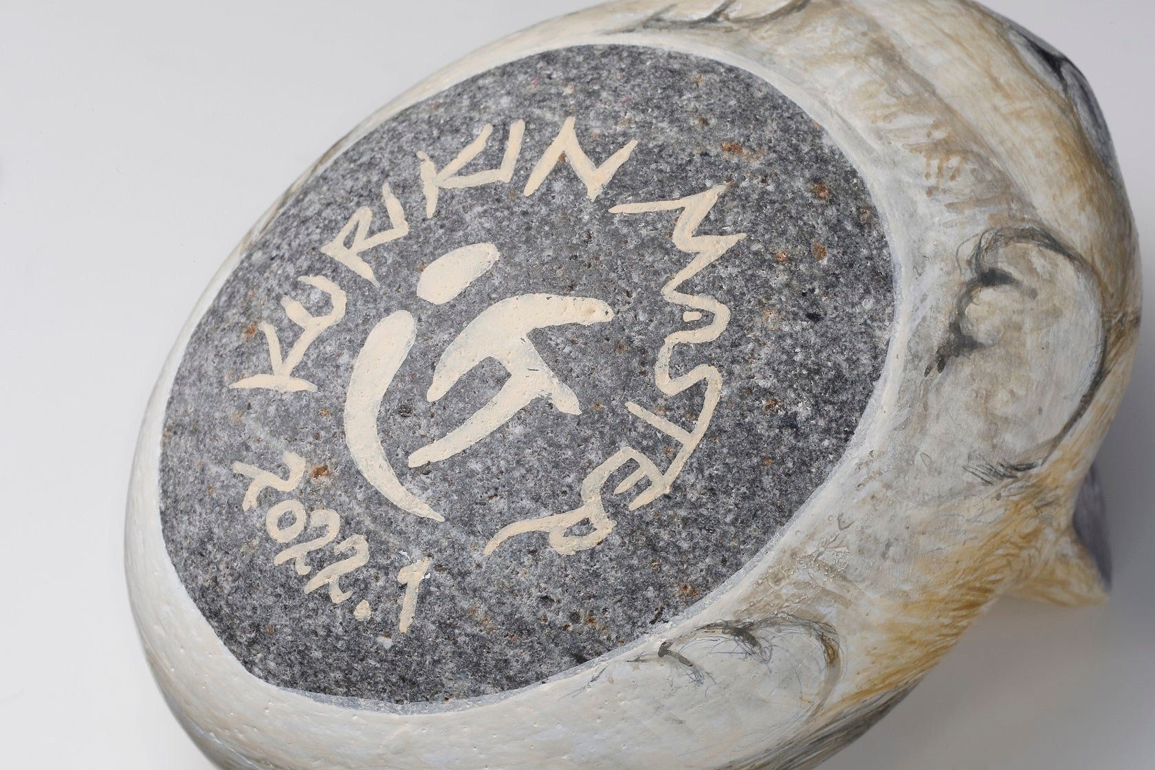 石全体に絵が描かれています。底面には栗屋さんの銘と製作年月がサインされる仕様です。この部分には彩色が施されていないので石の質感がわかります。