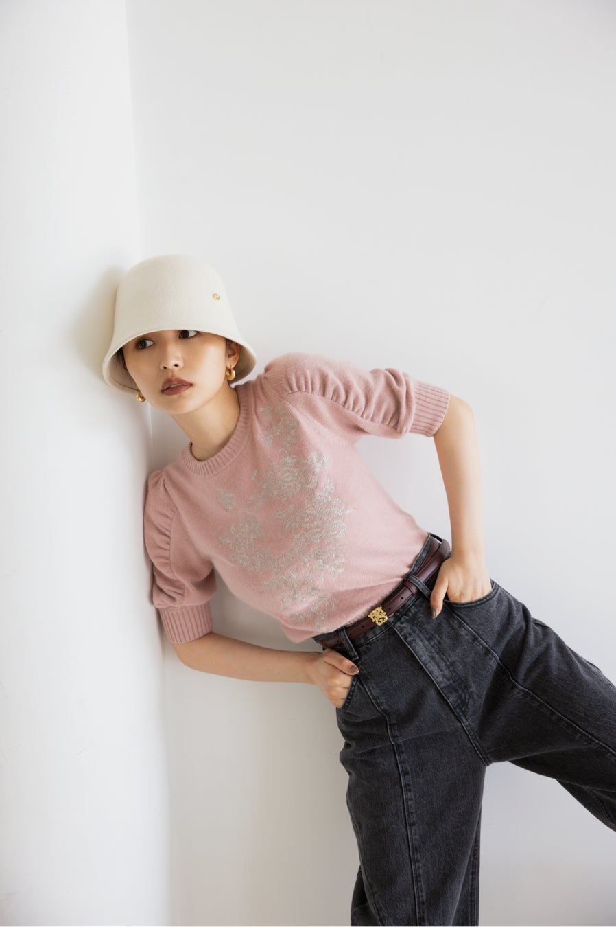 刺繍ニットプルオーバー