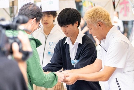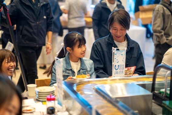 スペシャルゲストとしてオープニングステージに出演したロンドンブーツ1号2号の田村亮さんも販売ブースに駆け付け、飛び入りで高校生と一緒に売り子を務めました。商品を買い求めた来場者からは「高校生たちが元気よく販売していて、こちらも楽しくなってくる。試食も子どもでも安全に食べられるよう工夫されていて、高校生たちの取り組みの姿勢が伝わってきた」との声が。参加した高校生の一人も「今回の取り組みで海に興味を持ち、自分から情報を集めるようになった。一番の変化は、スーパーの鮮魚売り場で魚の種類や産地を見る時間が長くなったことだと思う」と話し、海と自分との距離がぐっと近くなったことを実感した様子でした。