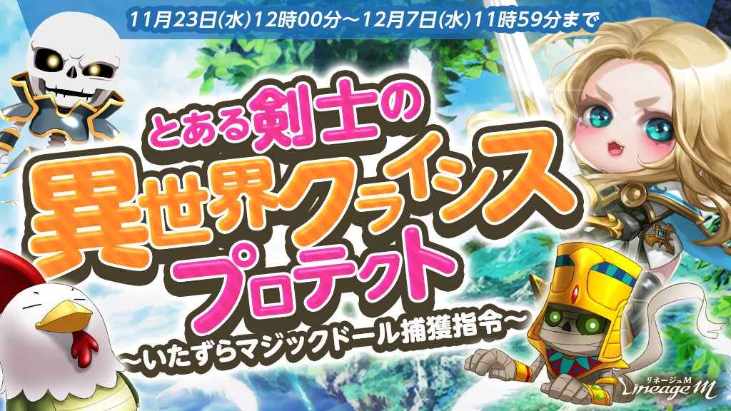 神聖剣士を操作して、異世界へ逃げ出したマジックドールを捕まえるミニゲーム「とある剣士の異世界クライシスプロテクト ~いたずらマジックドール捕獲指令~」を開始しました。