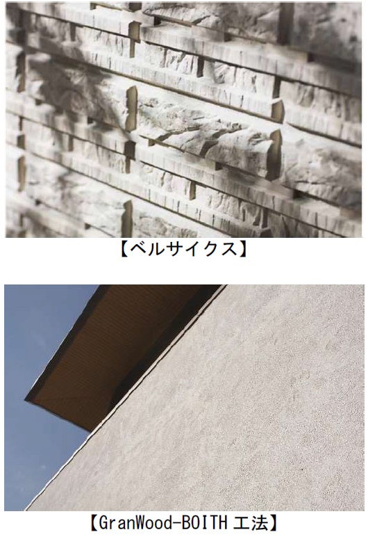 「PREMIUM GranWood SMILE Edition」では、目地のないシームレス外壁「GranWood-BOITH(グランウッドボイス)工法」を標準装備しました。継ぎ目のないシームレスな下地を使うことで、大きな面積でもフラットできめ細かく仕上げることが可能なため、耐久性と防水性が高く、美しい外観や木造ならではの自由度の高い設計を実現しました。