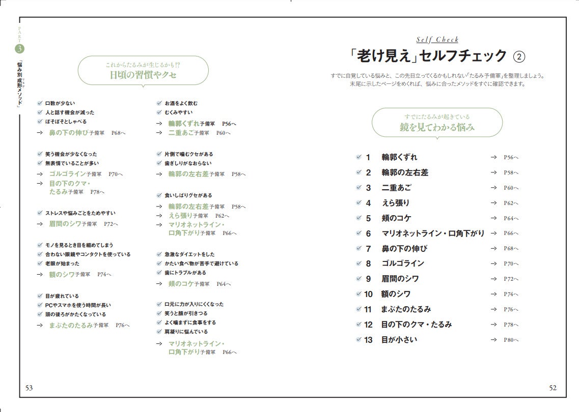 - 悩み別の「老け見え」解消マッサージも充実