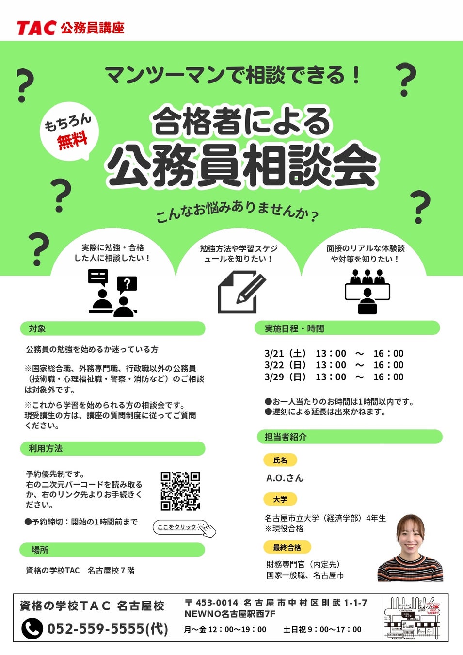 マンツーマンで相談できる!合格者による公務員相談会@TAC名古屋校