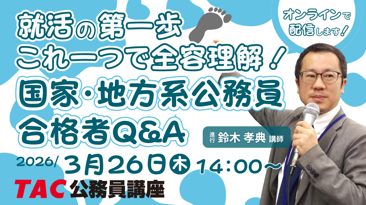 【TAC公務員】「就活の第一歩!これ一つで全容理解!国家・地方系公務員合格者Q&A」を3/26(木)にオンラインで配信します!
