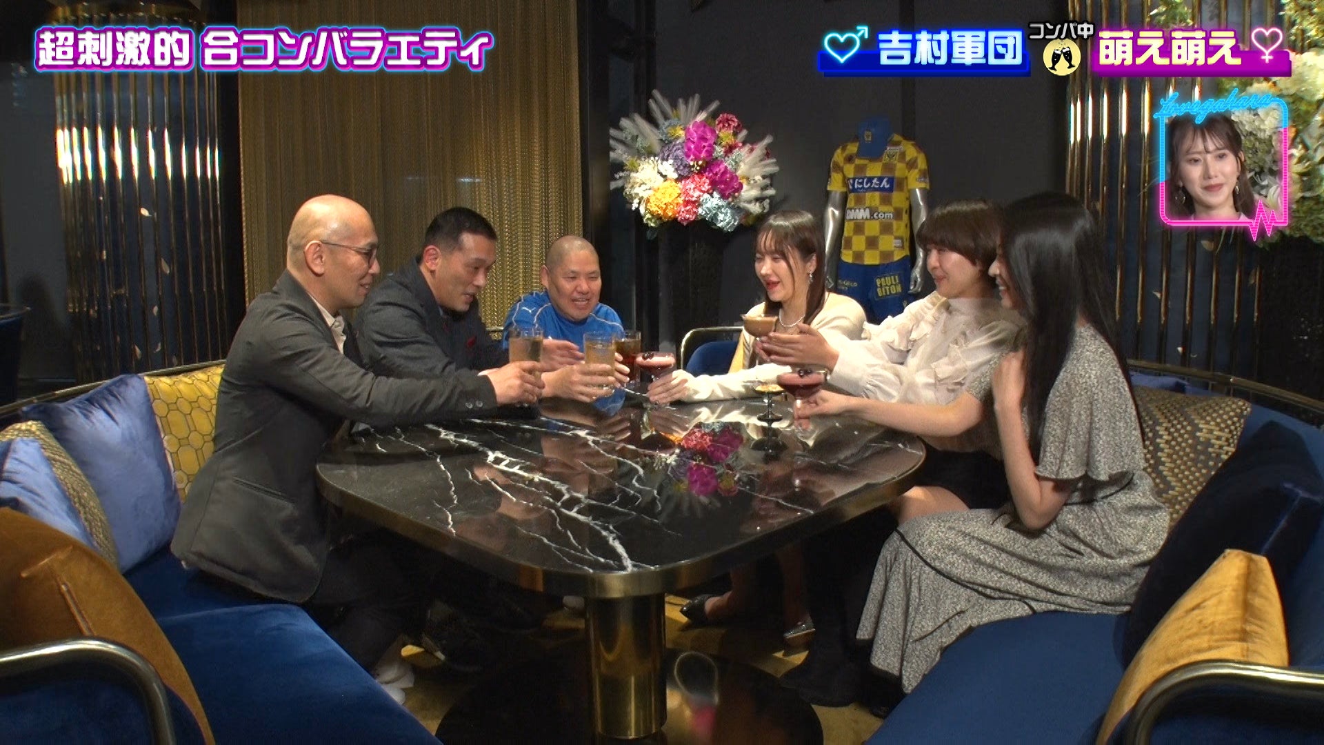 スタジオでは、吉村、澄田綾乃、名取くるみ、黒木麗奈、そしてゲストのコロコロチキチキペッパーズ(西野創人、ナダル)が合コンの模様をウォッチングします。