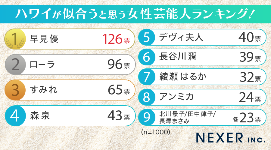 株式会社NEXER・ハワイが似合うと思う女性芸能人に関する調査