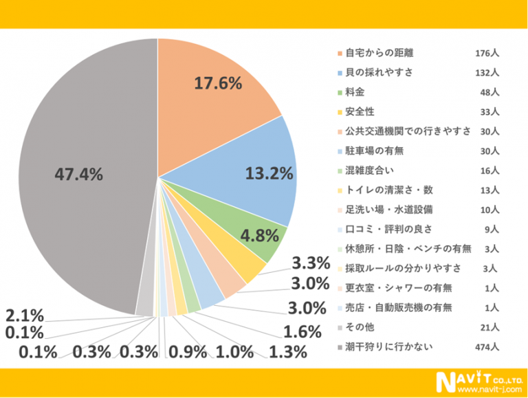 潮干狩り場を選ぶ際に最も重視する点は何ですか? (対象:1,000人)