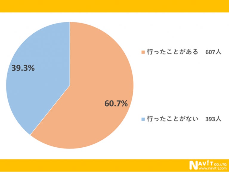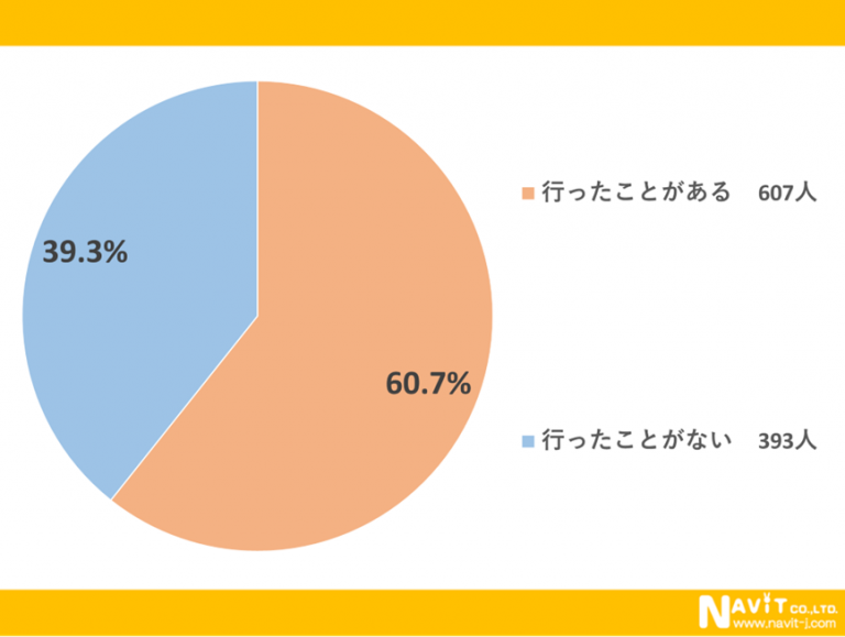 「潮干狩りに行ったことはあるかについてのアンケートでは、「行ったことがある」と回答された人は60.7%、「行ったことがない」と回答された人は39.3%という結果になりました。行ったことがある人の方が、かなり多いようです。