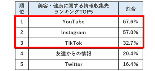 美容・健康に関する情報は、SNSが上位3位を占め、美容グッズの“使用方法”“紹介系”の投稿を参考