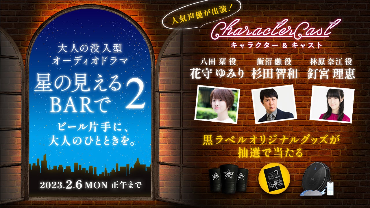 サッポロ生ビール黒ラベル『大人のオーディオドラマ”星の見えるBARで2“』キャンペーン人気声優の花守ゆみりさん、杉田智和さん、釘宮理恵さんが声で魅せる好評だった大人の没入型オーディオドラマが再び!