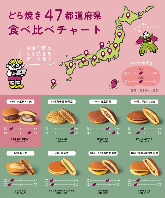 47都道府県のどら焼きをデータ化した、食べ比べチャートをご用意。(日本あんこ協会監修)