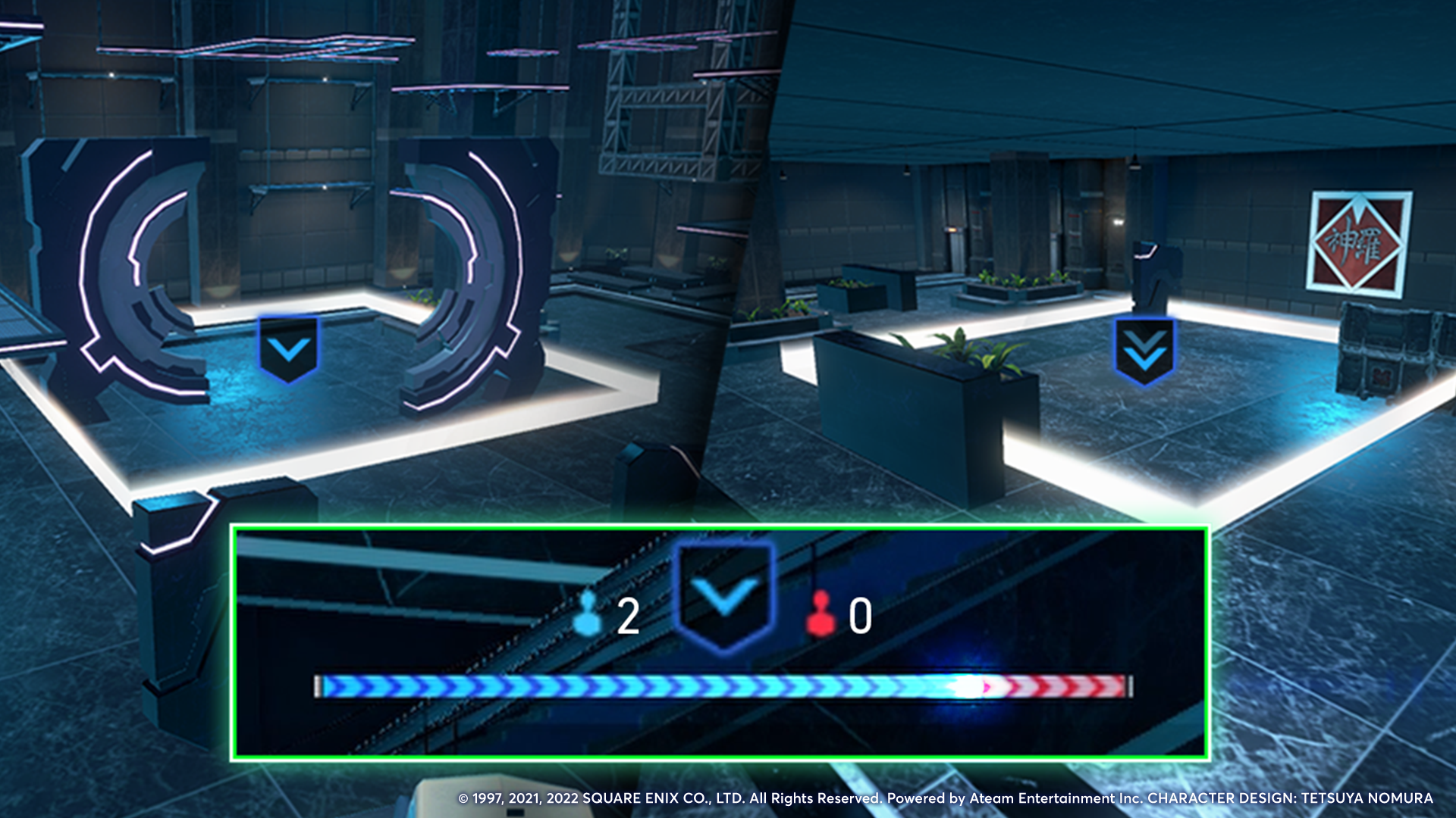 攻撃側チームは、3対3で戦いながらマップ内の「拠点エリア」のゲージをMAXにし、制圧することを目指します。