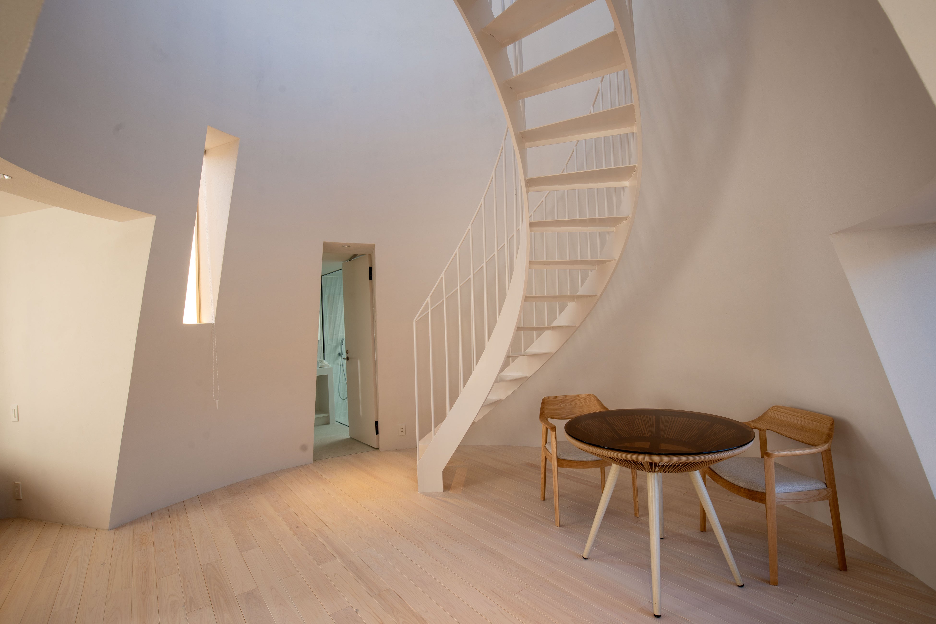リビングとして使われる塔を中心に個々の部屋が 集まり繋がり合う空間が特徴。