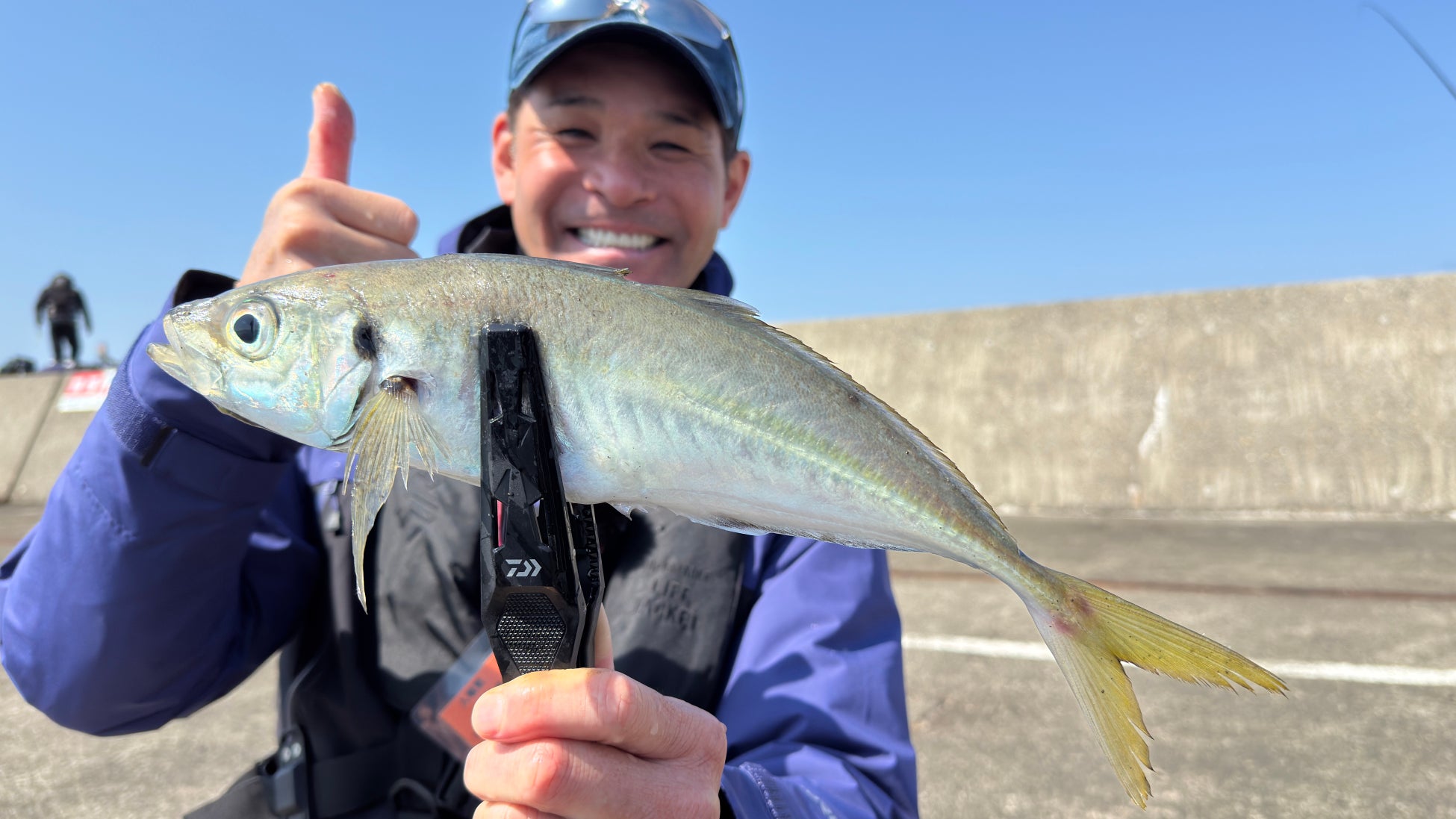 実は、この釣り場は30センチを超える尺アジがよく釣れることで有名なエリア。まさかの初アジングで尺アジ!?