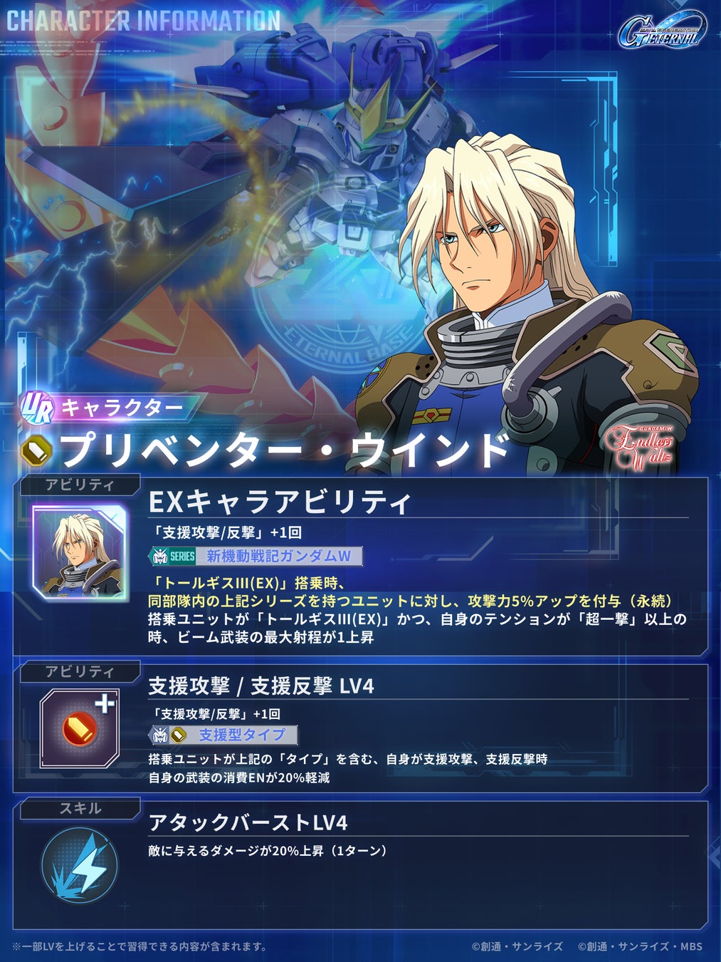 期間限定ユニットとして、UR「ウイングガンダムゼロ(EW版)(EX)」/UR「ヒイロ・ユイ(EW版)」やUR「ダブルオーライザー(最終決戦仕様)(EX)」/UR「刹那・F・セイエイ」が登場!