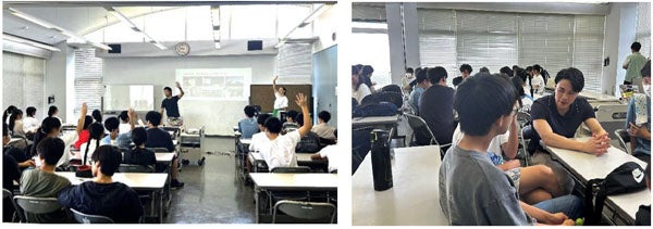 まずはUMINARIから海洋プラスチック廃棄物問題のワークショップを実施し、マイクロプラスチックは有害物質を吸着するため、餌と間違えて食べてしまった魚に有害物質が溜まり、それを食べた人間にも健康被害をおよぼすなど、プラスチック廃棄物が海に流れると起こりうる問題について学習しました。また、当社社員と湘南学園中学校の生徒のみなさんと、私たちが環境のために「今日からできること」は何かについてディスカッションを行いました。