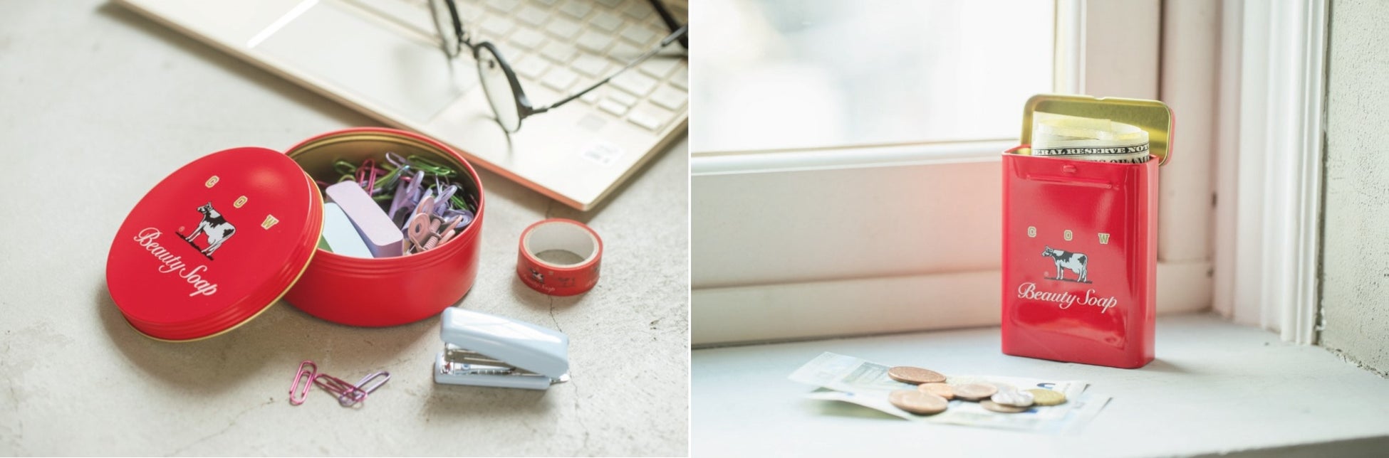 誌面では、オリジナルデザイン缶の使い方や、「カウブランド 赤箱」の歴史などを紹介し、牛乳石鹼・赤箱の魅力が詰まった一冊です。