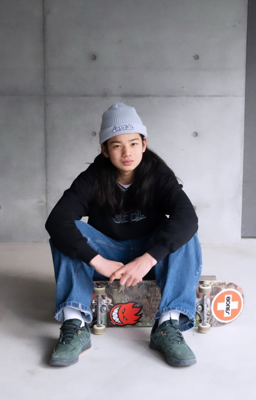 7歳でスケートボードを始め、わずか8年足らずで様々なコンテストで活躍中。2023年5月に行われたスケートボードの国際イベント「UPRISING TOKYO Supported by Rakuten」では、世界屈指のトップスケーターと肩を並べ10位に入賞。スケートボード界での名声を手に入れるための登竜門と呼ばれ、アマチュア最強を決める大会と位置付けられる「Tampa AM 2023」では、3位に入賞。今後が期待される若干14歳の若きスケートボーダー。