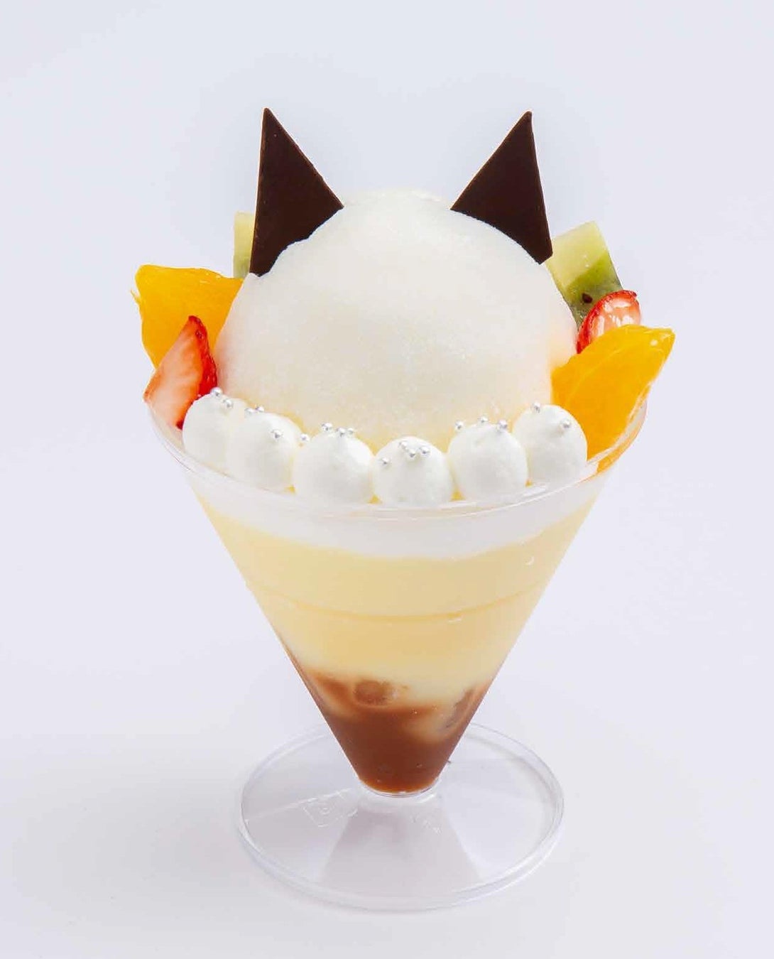 ぎゅうひでかわいいネコのかたちを表現したパフェ