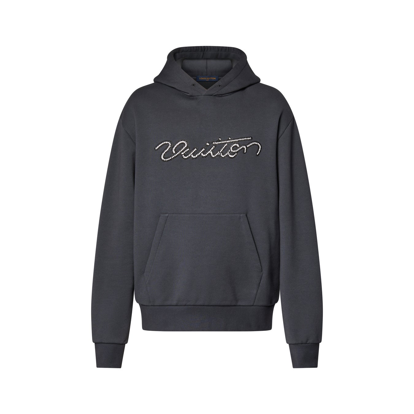 洗練されたダークグレーの色合いで登場した、タイムレスなフーディ。ミックス&マッチしやすいデザインのアイテムです。認証オーガニックコットンで仕立てられ、繊細なビーズ刺繍で施した「Vuitton」のシグネチャーが胸元全体を彩ります。季節の変わり目に活躍するマストハブアイテム。