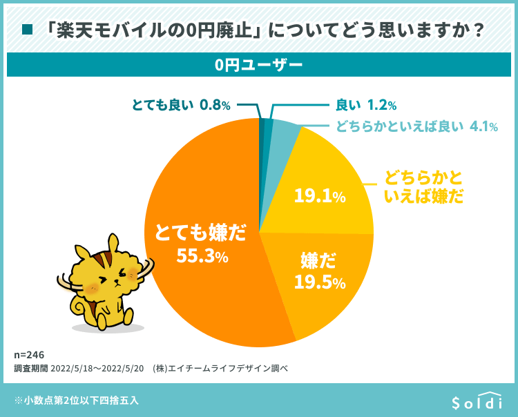 - 0円ユーザーの9割以上が楽天モバイルの0円廃止を「嫌」と回答