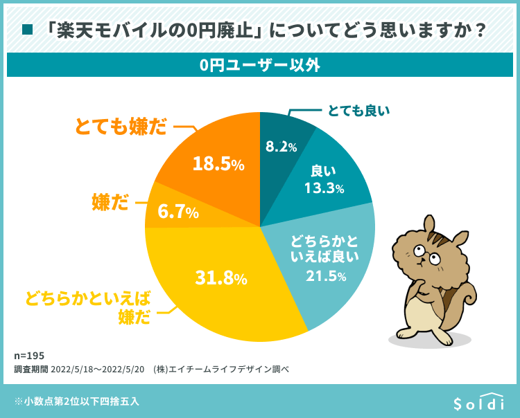 - 0円ユーザー以外の楽天モバイル利用者の約6割が0円廃止は「嫌」と回答