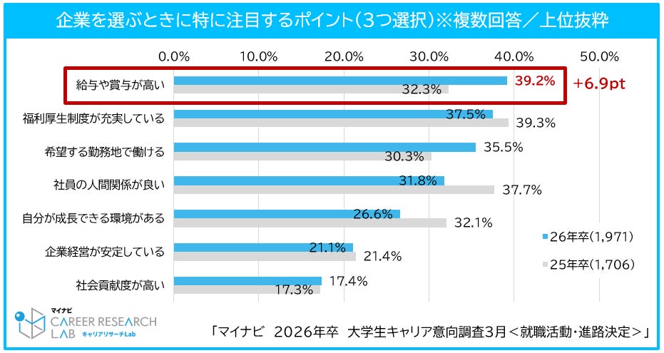 企業選択のポイントとして給与への関心が高まる中、中小企業の初任給引き上げが影響か