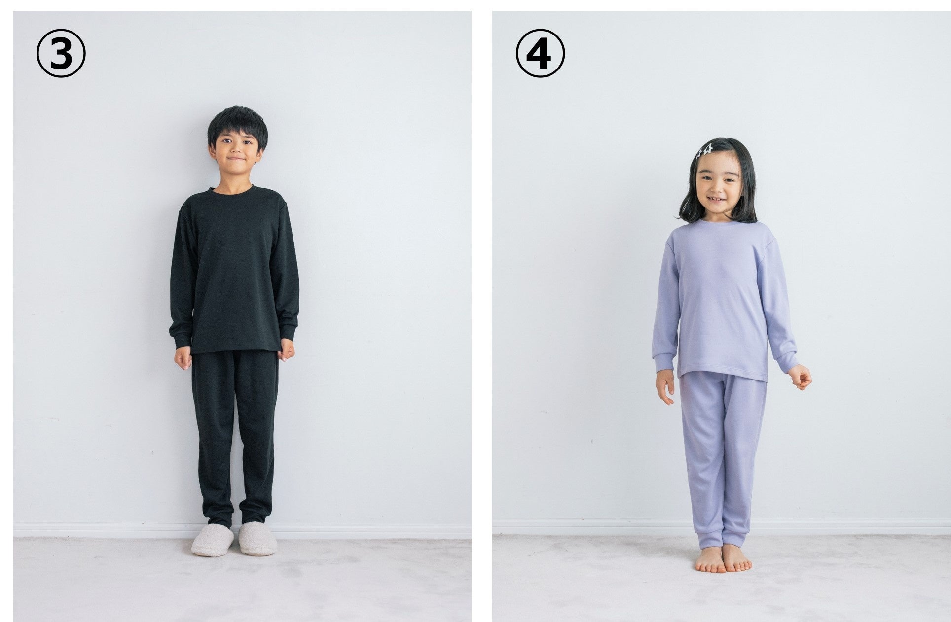 ④『Recoverypro Lab. KIDS 疲労回復ウェア 長袖クルーネック・ロングパンツ[一般医療機器] パープル/ミント』 120サイズ