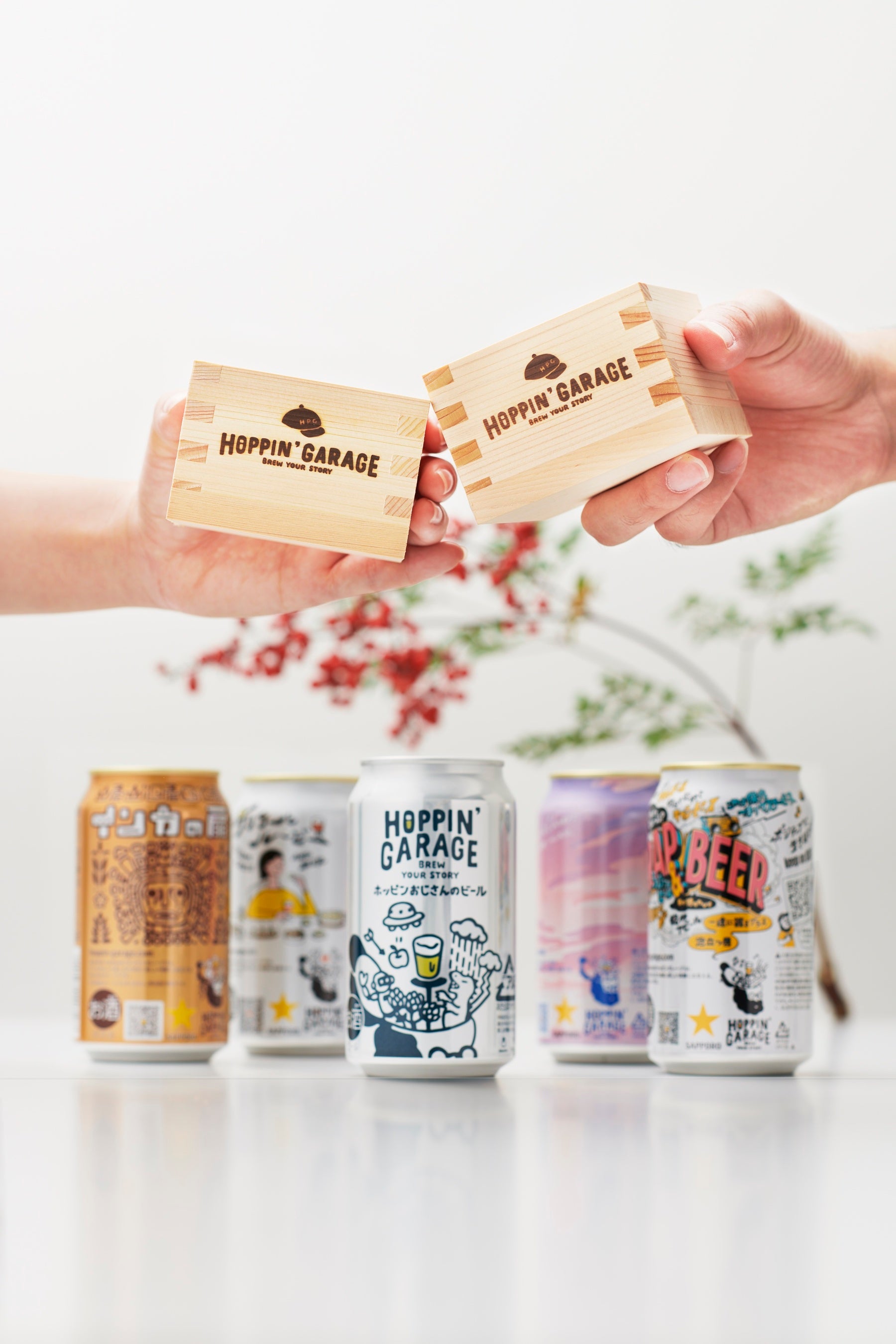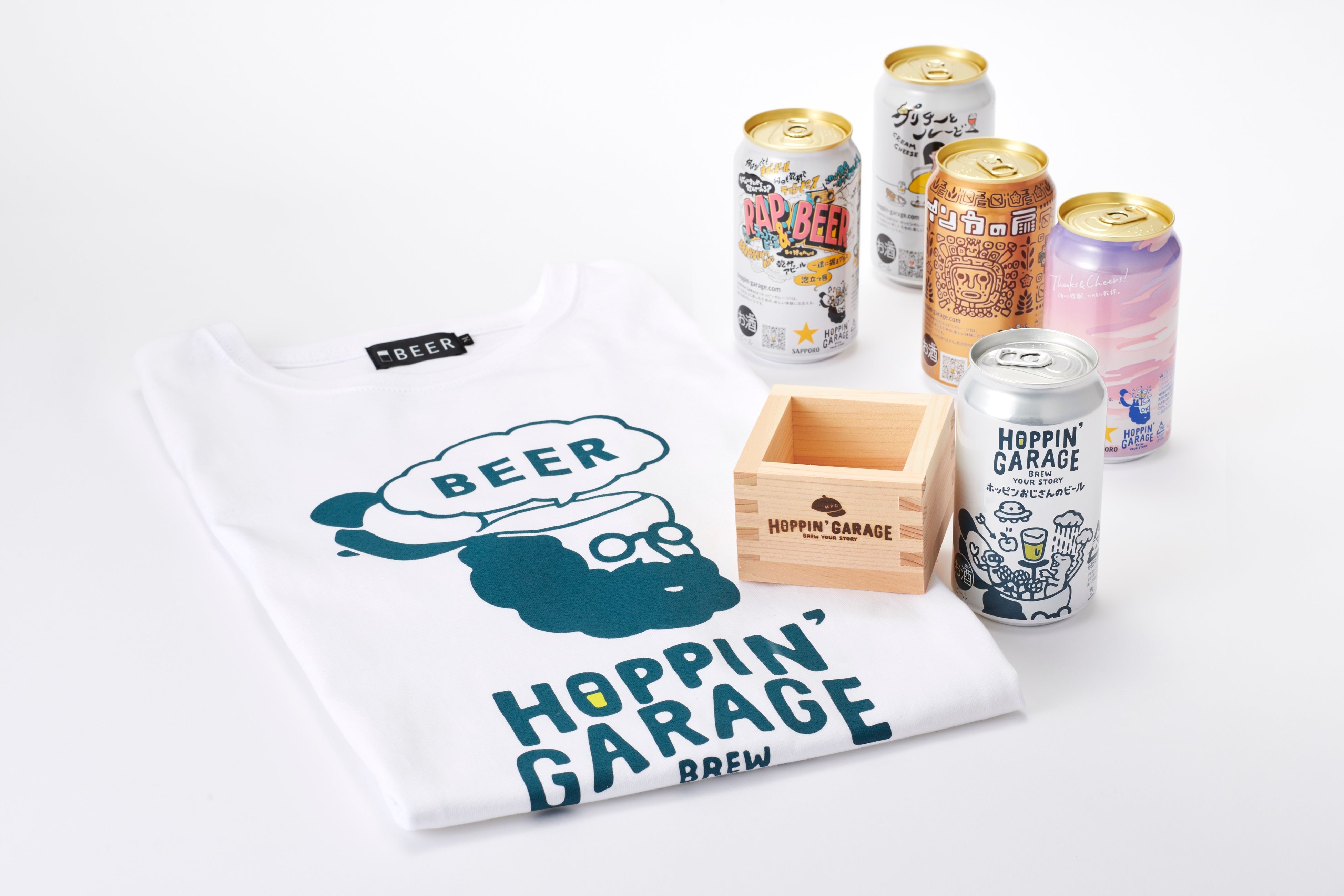 本商品は、「松」「竹」「梅」の3アイテムで、それぞれ「HOPPIN' GARAGE」の今までに発売した人気商品5種詰め合わせと限定グッズをお楽しみいただけるお得な福袋です。商品には、本ブランドのフラッグシップビールの「ホッピンおじさんのビール」のほかに、今までに発売した「HOPPIN' GARAGE クリチーとルービー」、「HOPPIN' GARAGE インカの扉」や、数量限定新発売の「HOPPIN' GARAGE RAP & BEER」をラインナップしています。限定グッズには、「HOPPIN' GARAGE」の焼印が入った正月枡をご用意。「松」セットでは「HOPPIN' GARAGE RAP & BEER」の企画者であるラップグループP.O.P(ピーオーピー)の上鈴木兄弟が手掛けるアパレルブランド「着るBEER」(注2)とコラボレーションしたTシャツも取り揃えています。クリスマスや年末年始を華やかに彩るお得なセットです。当社は「HOPPIN' GARAGE」を通して多様性あふれるビールを生み出し、そのストーリーを味わいながら飲むという、新たなビールの楽しみ方を提供することで「新しいお酒のある豊かな社会と生活」に貢献していきます。