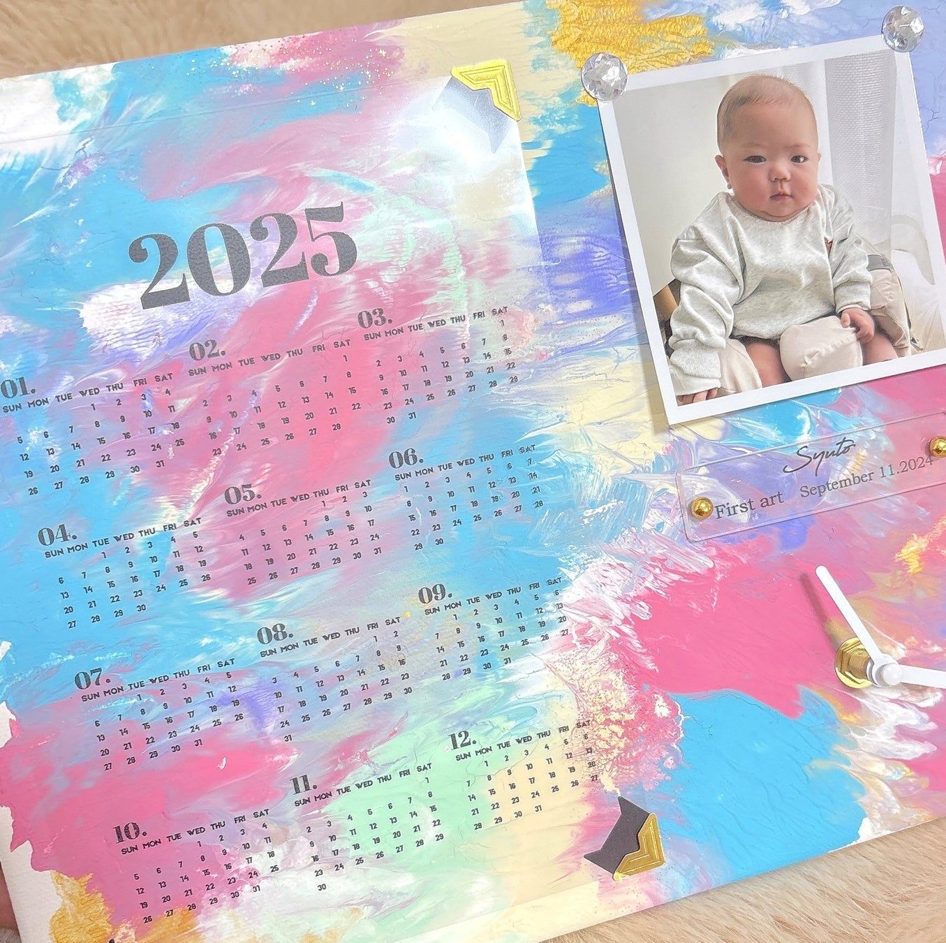 お子さまのフィンガーアート体験を記念に残しませんか?キャンバスアートを作る様子を動画に収め、編集したものをプレゼント。完成したアートはカレンダーや時計としてお使いいただけます。