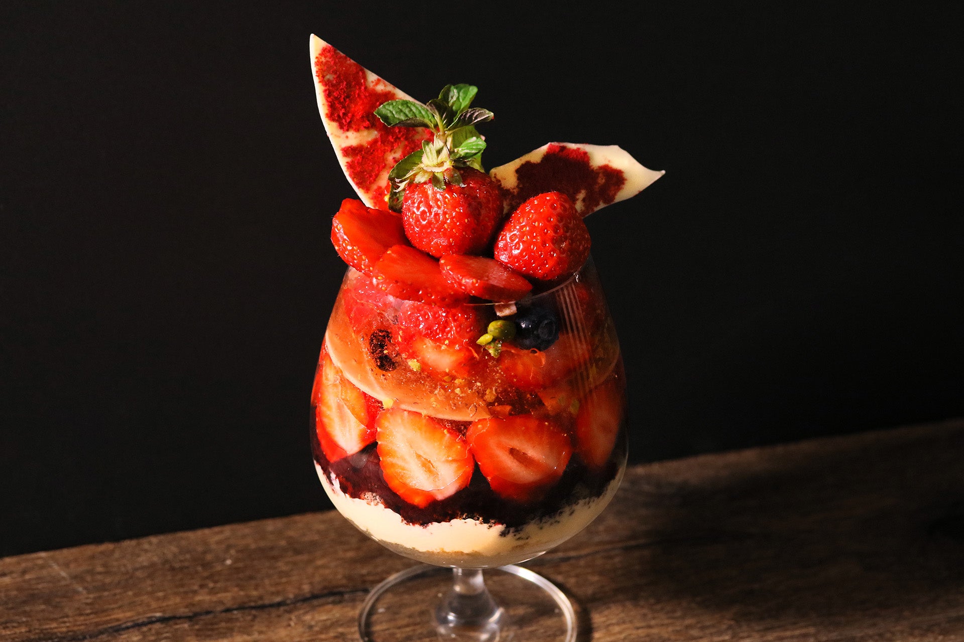 恵比寿「TOOTH TOOTH」は、ディナータイム限定のパフェ『1ダース"あまおう"のいちごパフェ