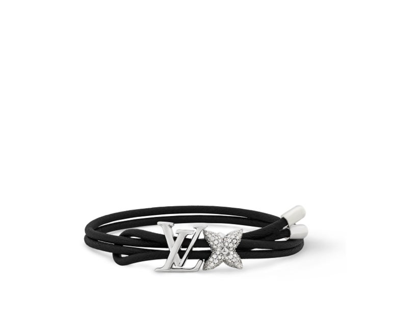 メゾンならではのスタイルとシグネチャーディテールが目を引く、真のステートメントアイテム「ブレスレット·LV ブルーム ストラス」。ダブルのレザーコードには精緻に仕立てられたシルバーカラーのモノグラム·フラワーとアイコニックなLV イニシャルがあしらわれ、まばゆい輝きを放つジルコンがグラマラスな華やかさを演出します。あらゆる装いに洗練されたきらめきを添える一品。