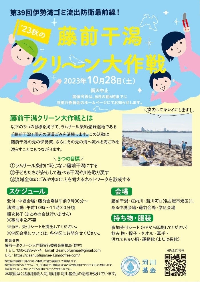 伊勢湾ごみ流出防衛最前線! 【第39回 秋の藤前干潟クリーン大作戦】を開催します!