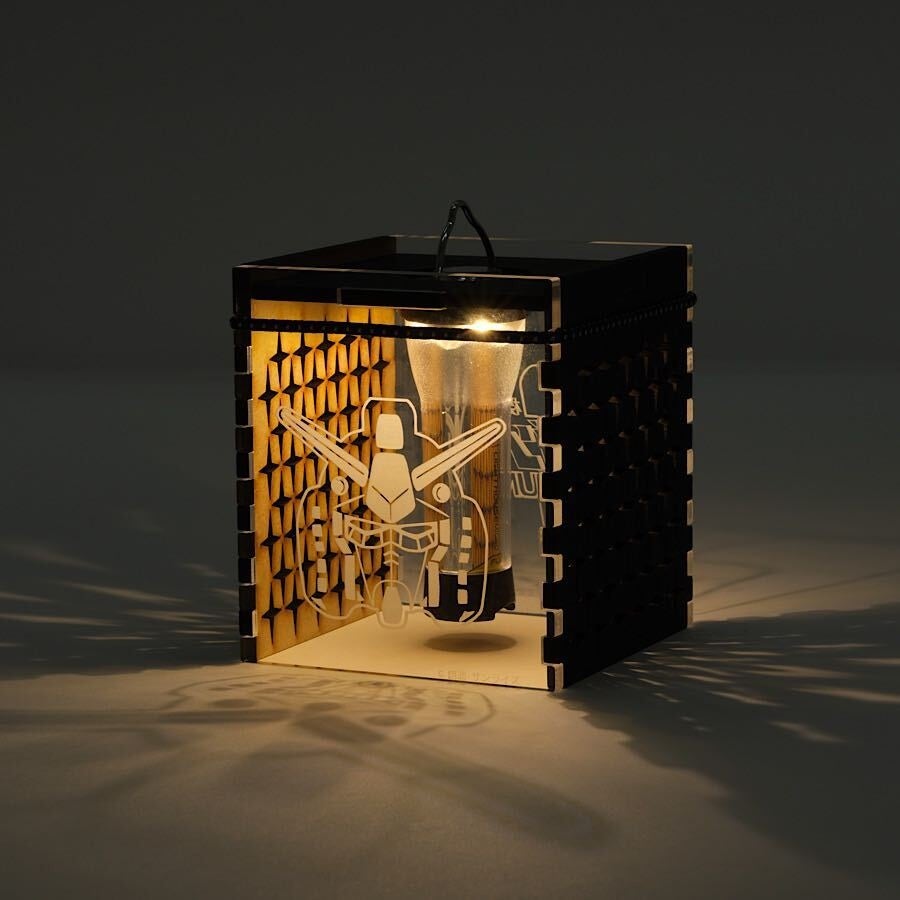 鹿沼市の木工業者と東京のデザイナーによって立ち上がった「鹿沼のすごい木工プロジェクト」に参加している白石物産株式会社(SOU LABO)にご協力いただき、『機動戦士ガンダム』デザインのアウトドアやインテリアとしてご使用いただけるランタンカバーを制作いたします。