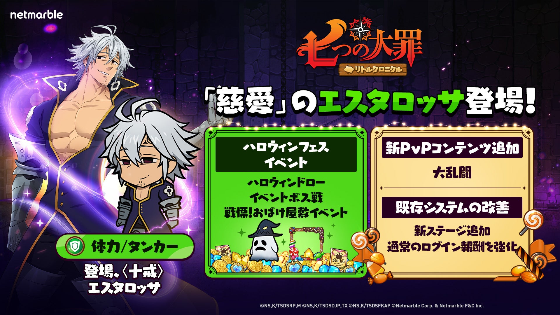 『七つの大罪~リトルクロニクル~』新レジェンドキャラ「慈愛のエスタロッサ」の登場やハロウィンをテーマにしたアップデートを実施