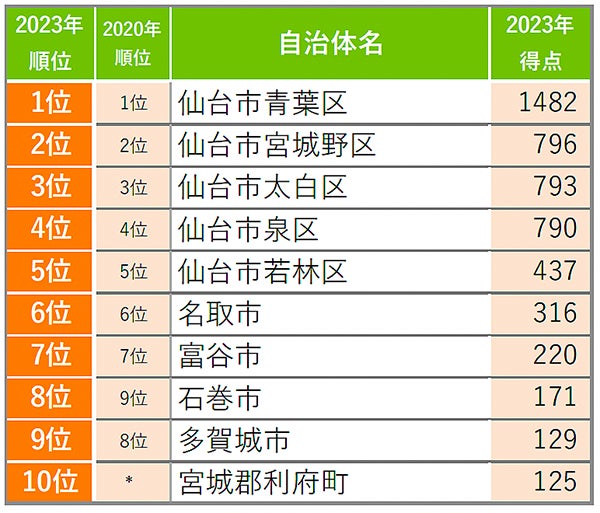 SUUMO住みたい街ランキング2023 宮城県版/仙台市民版