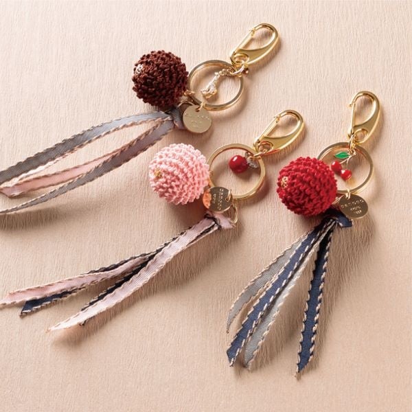 秋らしい落ち着いた7色のかわいい鹿の子絞りのキーホルダーです。【京鹿の子絞/絞彩苑 種田】鹿の子絞りキーホルダー(生地 絹100%、7色)(各1点) 3,850円(税込)
