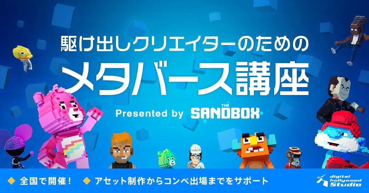 IT関連及びデジタルコンテンツの人材育成スクール、デジタルハリウッド(運営会社:デジタルハリウッド株式会社 本社/本校:東京都千代田区 学長:杉山知之)が運営をする、Webと動画などが学べるラーニングスタジオ『デジタルハリウッドSTUDIO』(全国36拠点 ※2022年8月現在)では、世界のブロックチェーンをリードするゲームメイキングプラットフォーム「The Sandbox」の世界をクリエイトするVoxel Artists(ボクセルアーティスト)とVoxel Game Creators(ボクセルゲームクリエイター)を育成する新規講座を、全国のデジタルハリウッドSTUDIO(札幌、仙台、東京、大阪、福岡)で9月より開講します。