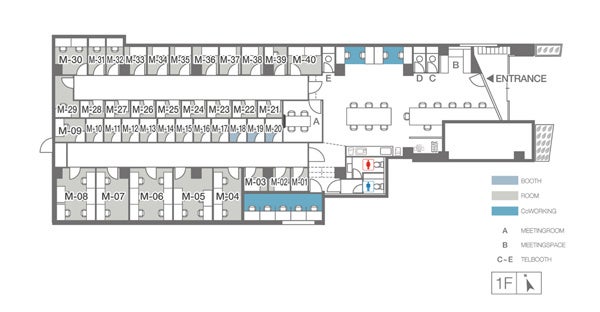 オフィス仕様:コワーキング22席、1名ブース4室、1名個室29室、2名個室2室、3名個室2室、4名個室1室、5名個室1室、6名個室1室、会議室(4名)1室、TELブ―ス3室