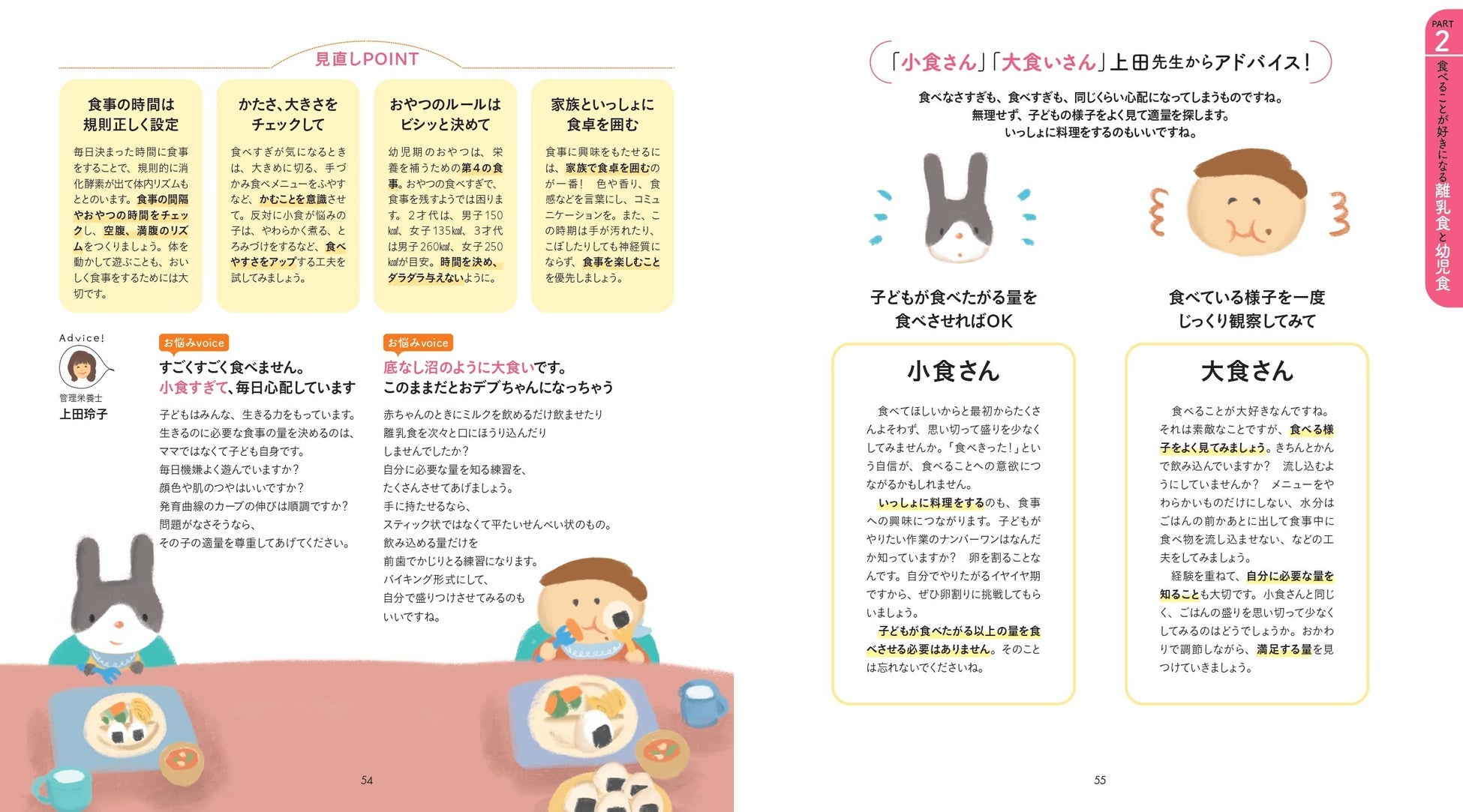 管理栄養士の上田玲子先生は、「子どもはみんな、生きる力をもっています。生きるのに必要な食事の量を決めるのは、ママではなく、子ども自身」と言います。子どもの様子を見て、その子の適量を尊重してあげたいものです。