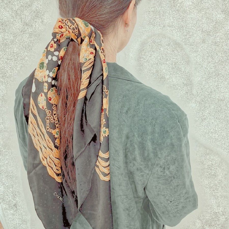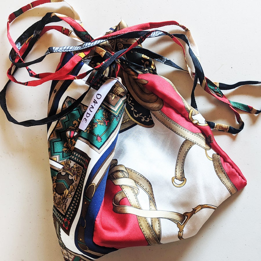 古いスカーフの端切れなどを使った一点物のくせありアイテムを展開します。